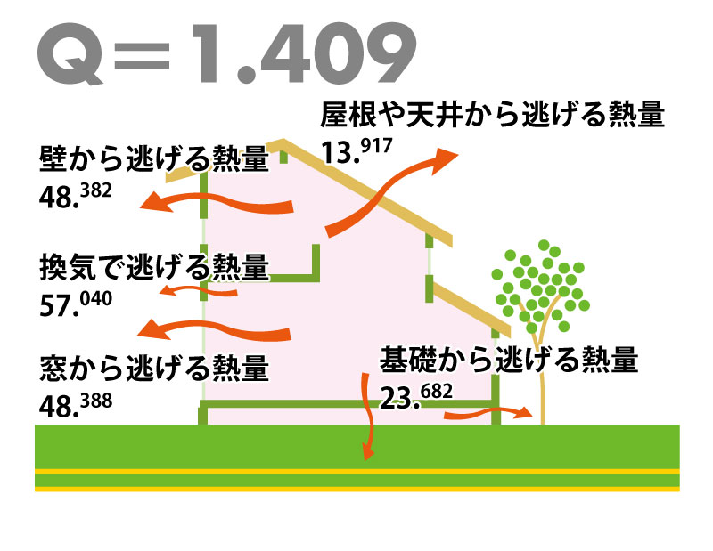 国で決めた次世代省エネルギー基準は1.6W/Kと言う基準です。この数値は小さい程、住宅から逃げる熱量が少ない、つまり省エネ住宅と言う事になります。