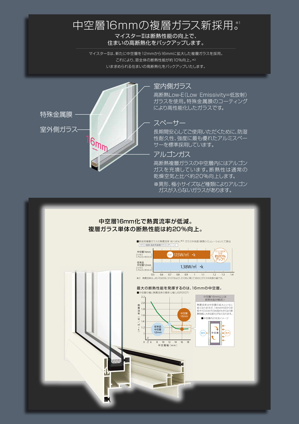 サッシ自体の断熱性能は基準サッシK値1.5Wより1.4Wへ上昇しました。